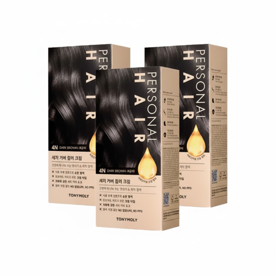 Tonymoly 4N (Black Brown) Personal Hair Shade Cover Cream 3ea-Herbal Ammonia-Free Permanent Hair Dye