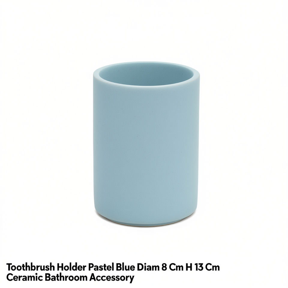 Portaspazzolino in Ceramica Blu Pastello, Diametro 8 cm, Altezza 13 cm, Accessorio per Bagno