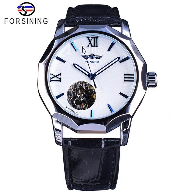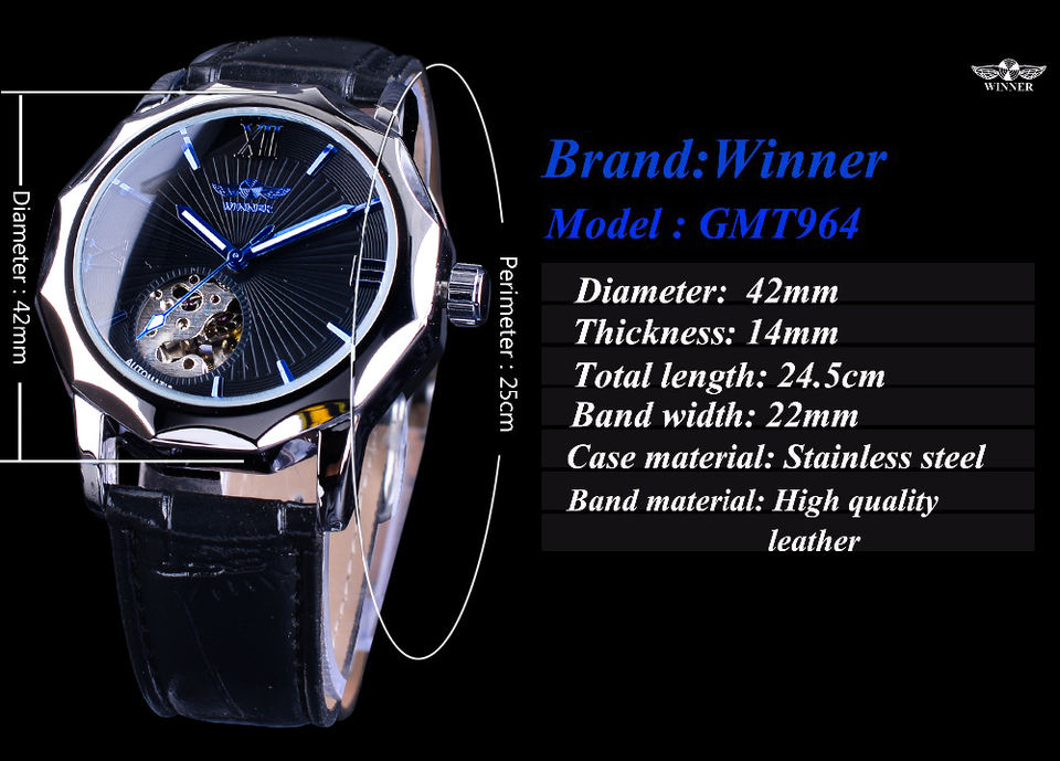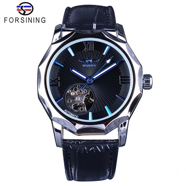 Top Brand Luxury Winner Blue Ocean Geometry Design Transparent Skeleton Dial Mens Watch Automatic Fashion Mechanical Watch Clock
