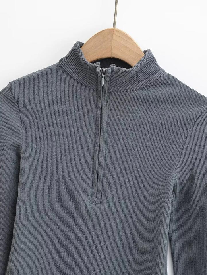 Top De Mujer stampato senza Moq t-Shirt manica lunga mezza altezza collo sottile maglia autunno mezza cerniera comoda camicia da donna