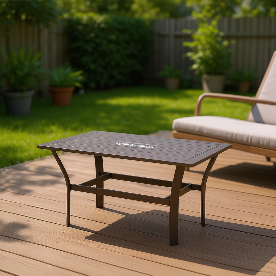 Tavolino da Esterno con Piano in Legno e Struttura in Metallo, Design Contemporaneo per Patio e Giardino