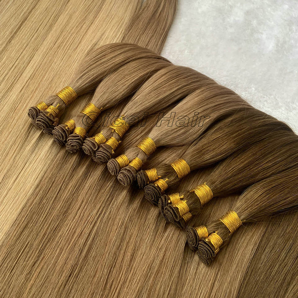 Extension di Capelli Umani 100% Reali di Alta Qualità, Trama Invisibile Annodata a Mano, Punte Spesse, Colore Personalizzato, Capelli Grezzi