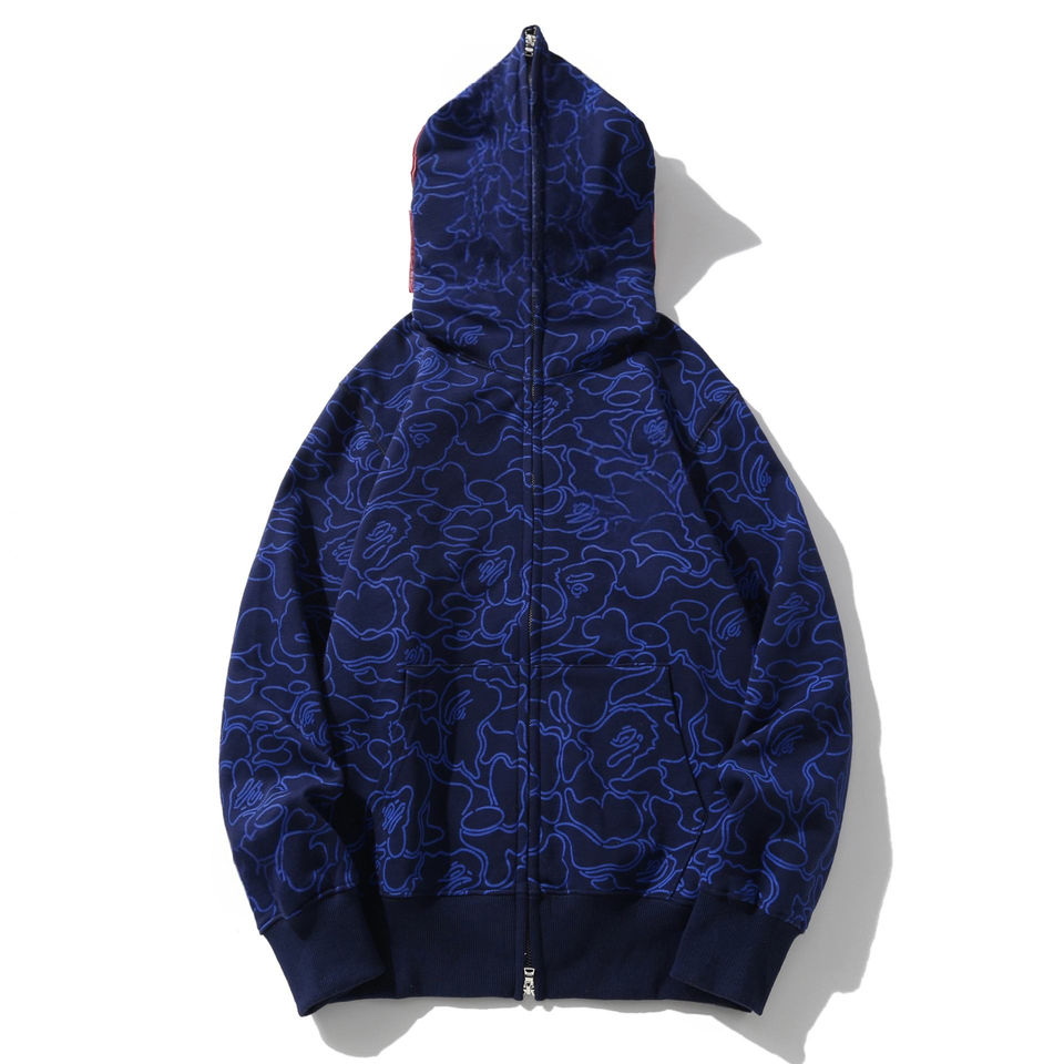 Top Quality Bathing Ape Camo Shark Zip up Hoodies 100% Cotton Sweatshirt Men Streetwear Full Zip Bapees Hoodie