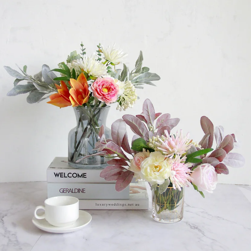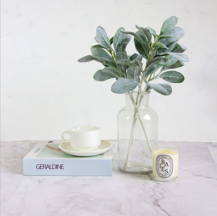 Di alta qualità finta vegetazione foglie di coniglio stelo 38cm agnelli floccati artificiali orecchio decorazione di nozze piante artificiali