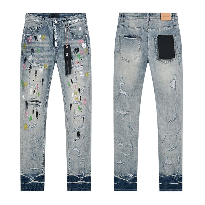 Top Quality Luxury Casual Designer Brand Jeans Hip Hop Stretch Ripped Denim Comfortable Streetwear Purple Black Men's Jeans