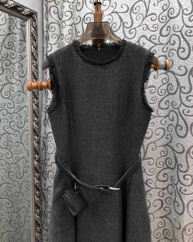 Nuovo abito invernale di alta qualità 2025 moda stilista da donna con cintura Patchwork senza maniche a metà polpaccio abito in misto lana Vestidos