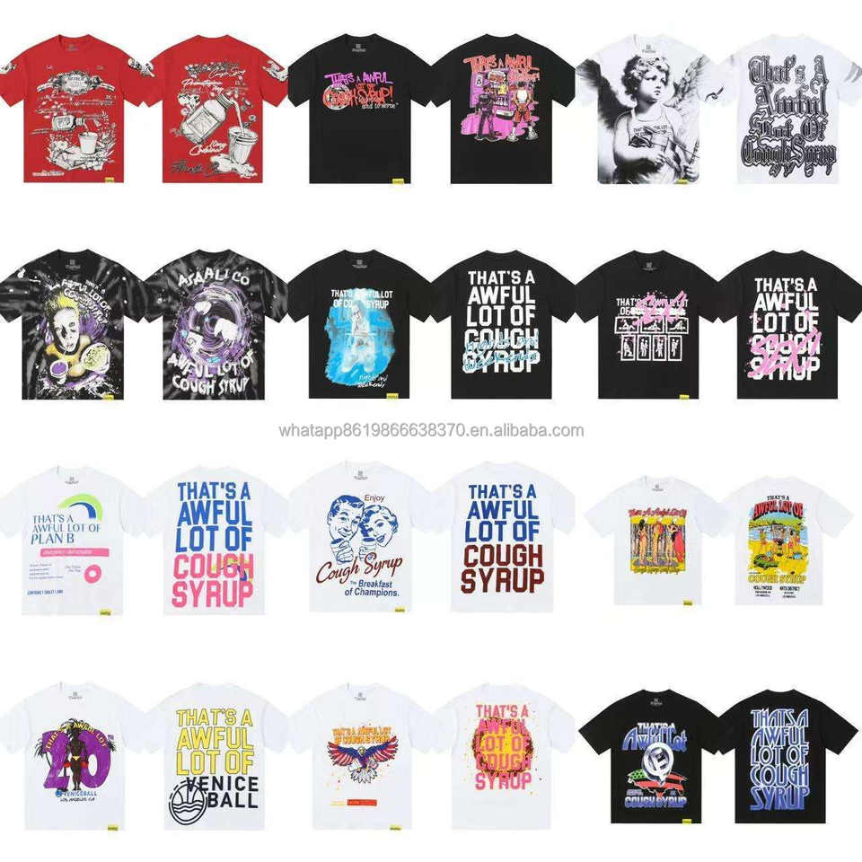 T-Shirt Oversize di Alta Qualità a Maniche Corte 100% Cotone, Abbigliamento Maschile con Scritta 'THAT'S AWFUL LOT of COUGH SYRUP'