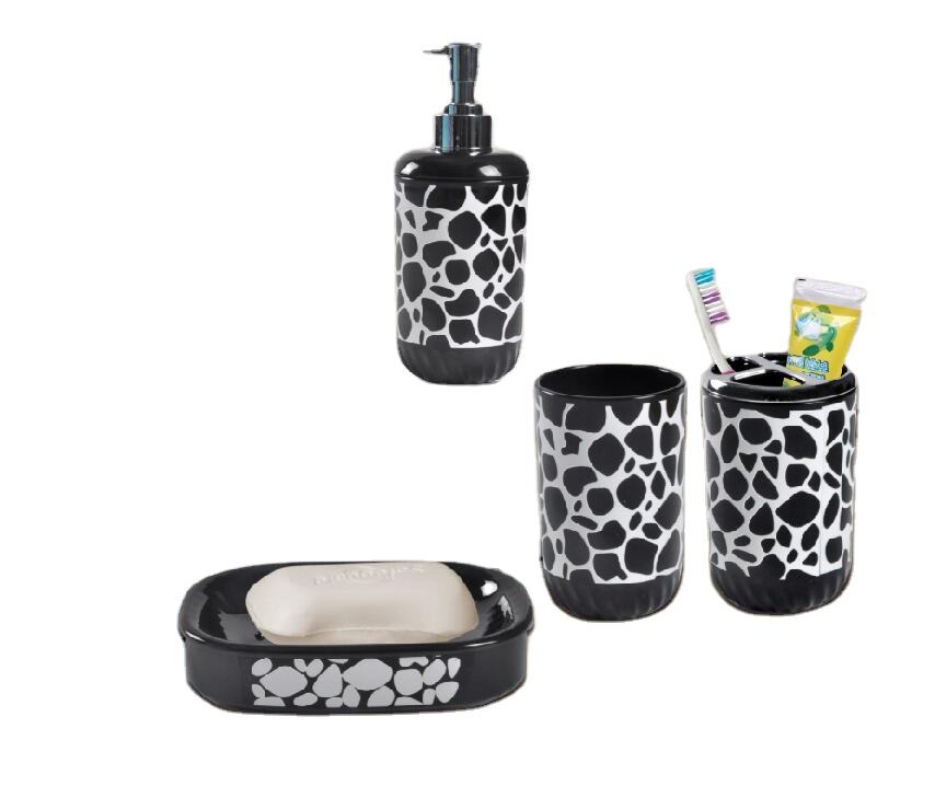 Set di accessori da bagno in plastica di alta qualità con Dispenser per lozioni, porta spazzolino da denti, portasapone e bicchiere