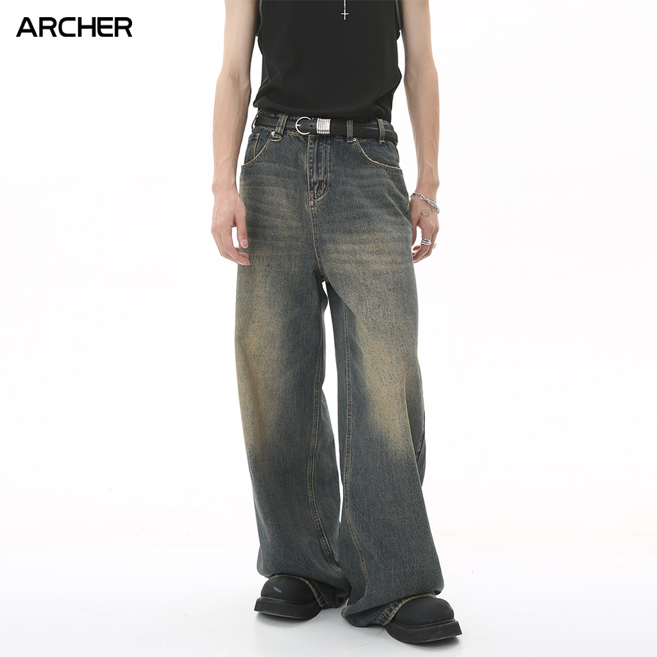 Top Quality Retro Loose Custom Mens Pants Add LOGO Mens Baggy Jeans Men Denim Trousers Jeans