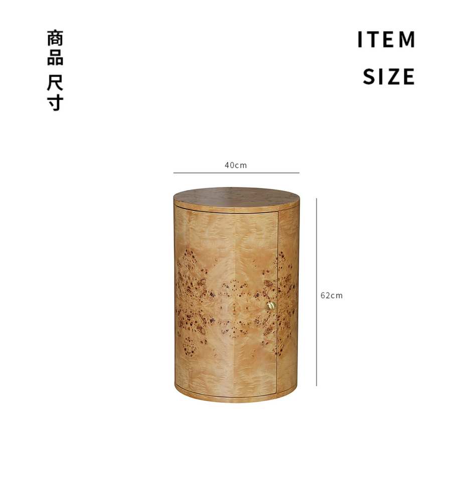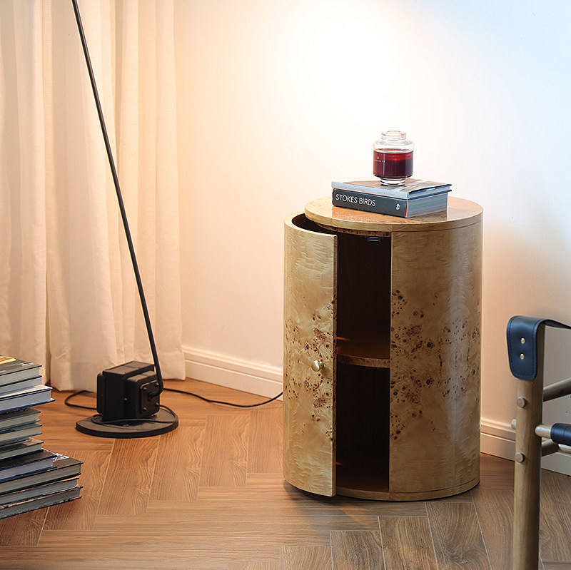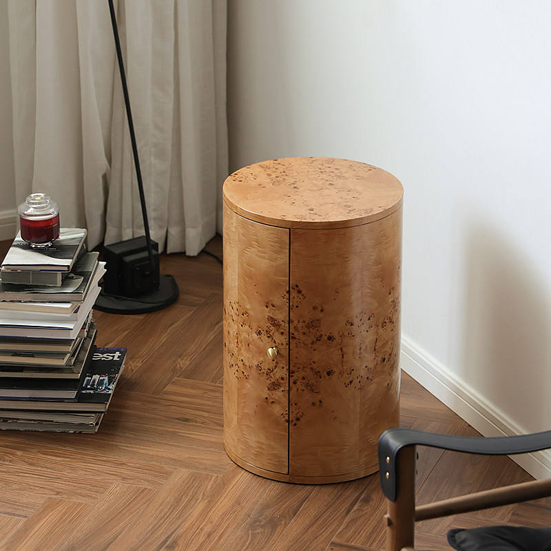 Comodino in Legno Massello di Alta Qualità con Impiallacciatura in Legno Nodoso, Tavolino Rotondo da Letto