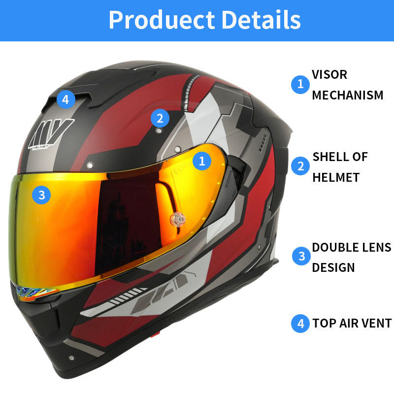 Top-Rank DOT Approved Dual Lens Carbon Fiber Full Face Motorcycle Helmet Vintage Novel with Big Tail Crash Racing Helmets