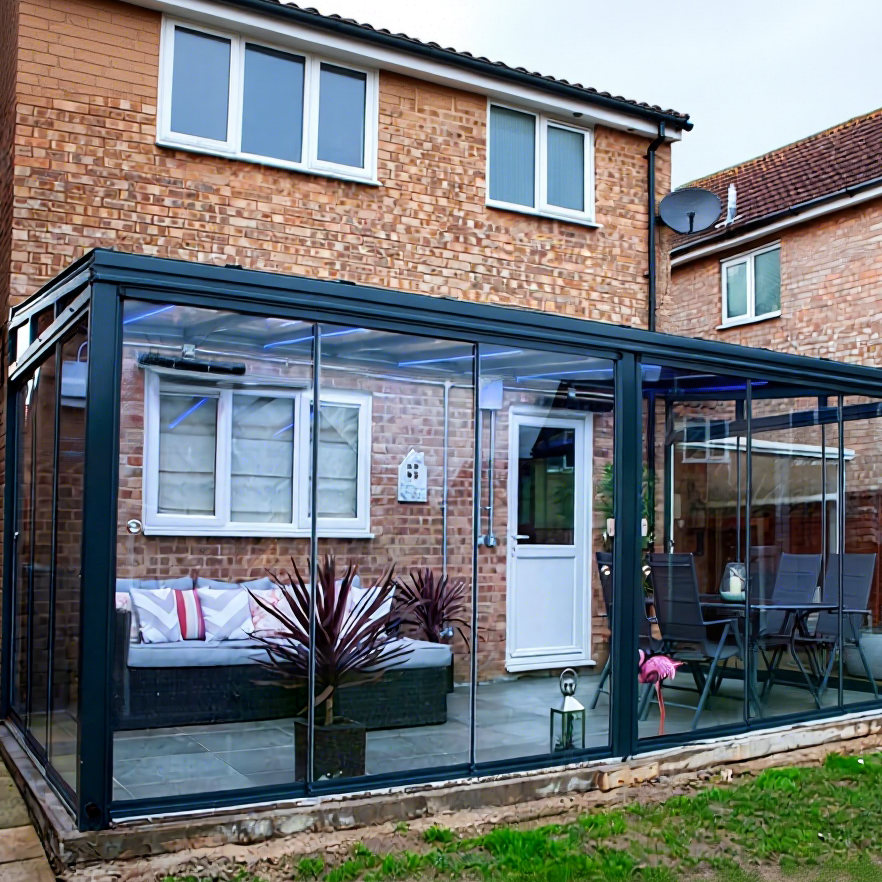 Case in vetro piatto per veranda Solarium personalizzate di alto livello camera da giardino garantita case in vetro per veranda in lega di alluminio