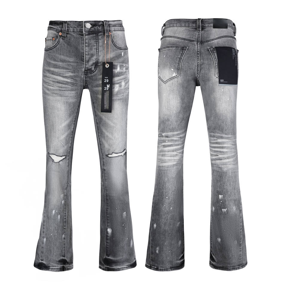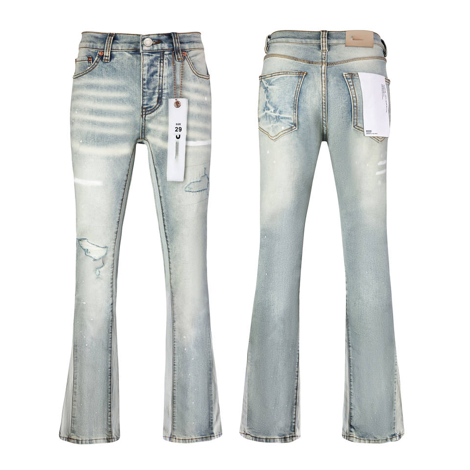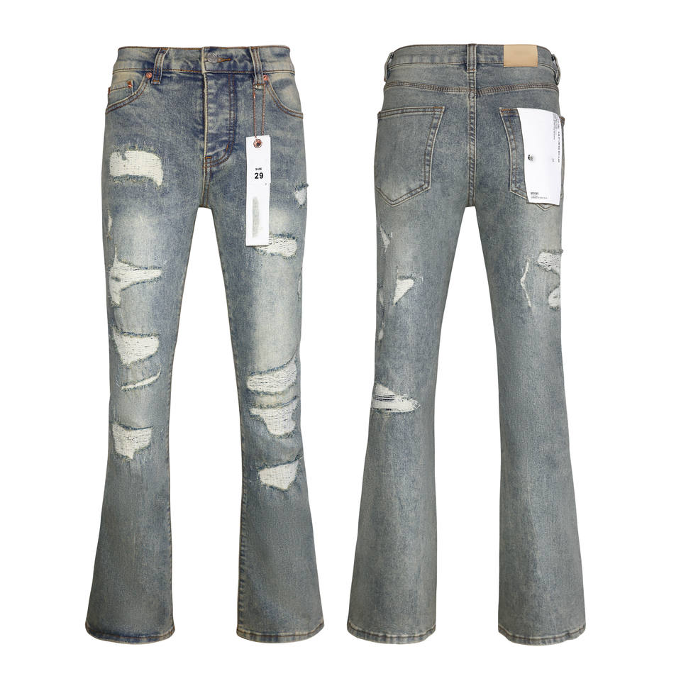 Nuovi Jeans da Uomo Casual Retrò, Modello Svasato, Vita Media, Lavaggio Acido, Effetto Usurato, Strappi al Polpaccio, Stile Designer.