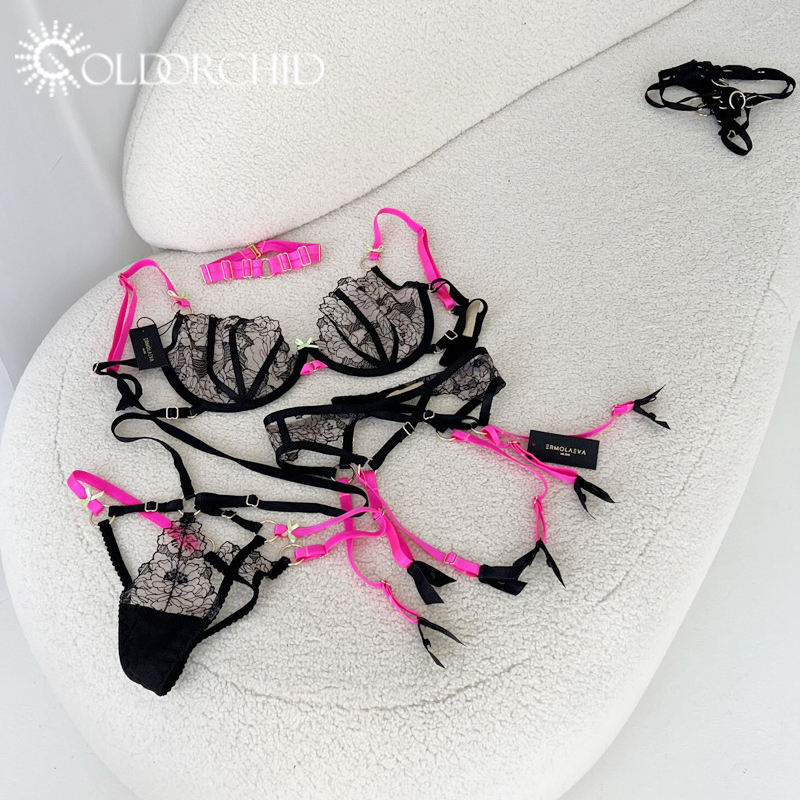 Set di 4 Pezzi di Lingerie Sexy in Pizzo Nero Erotico a Prezzo di Fabbrica