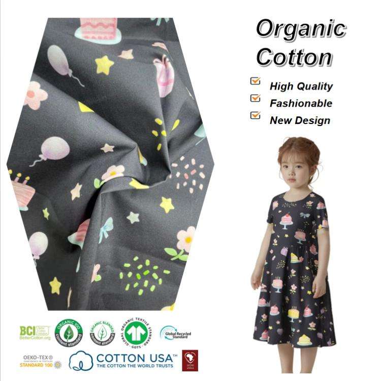 Top venduto cotone Spandex stampa digitale tessuto popeline Liberty Soft per le ragazze vestito tessuto organico di peso medio