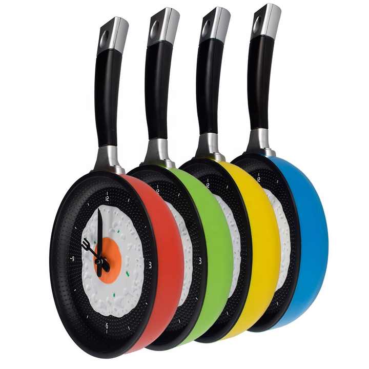 Top Selling Creative Egg Plastic Cutlery Kitchen Wall Clock Decorative Frying Pan Wall Clock