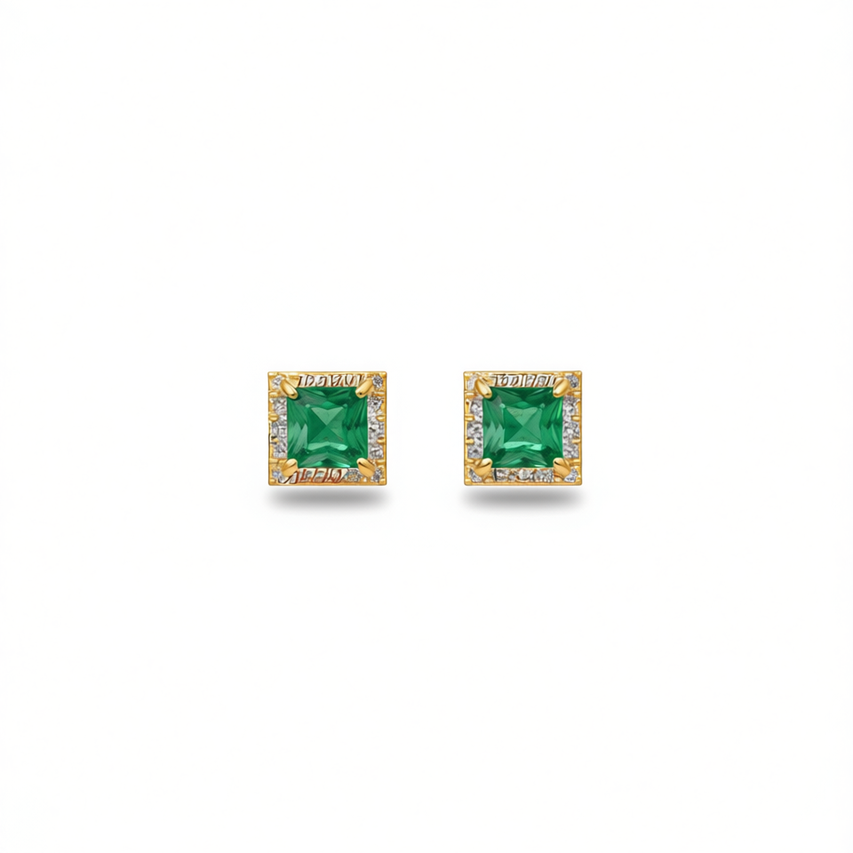 Topaz Stud Earrings 18K Gold Plated Emerald Princess Cut Geometric Women's Party Jewelry Classic Design