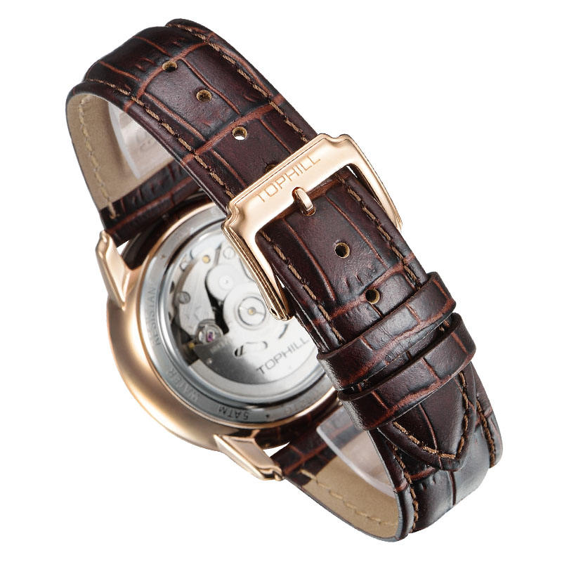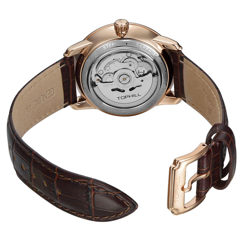 Tophill TW021G Super Time 5ATM Waterproof Genuine Leather Luxury 38.8mm Dial Rose Gold Mechanical Mens Wrist Watches