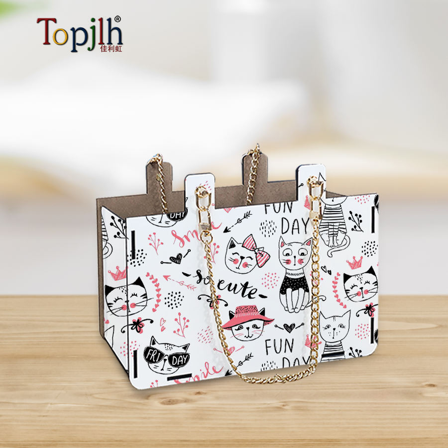 Topjlh Personalized DIY Logo Wooden Handbag Shopping Tote Bag Sublimation Blank MDF Long Chain Tote Bag