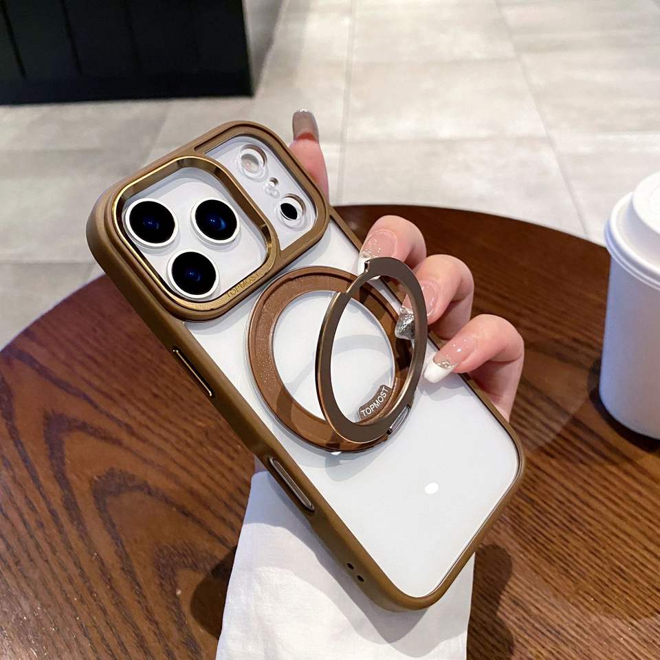 Custodia per telefono più alta con rotazione 360 ad anello magnetico supporto custodia trasparente telaio in metallo con linea d'oro per IPhone 17 Pro Max