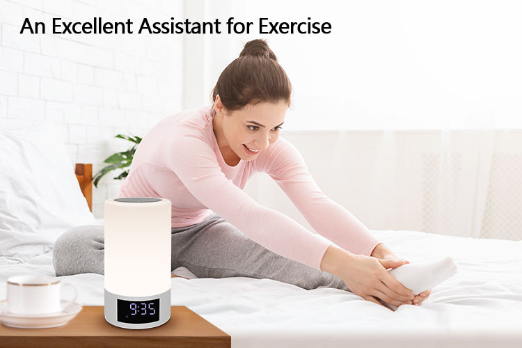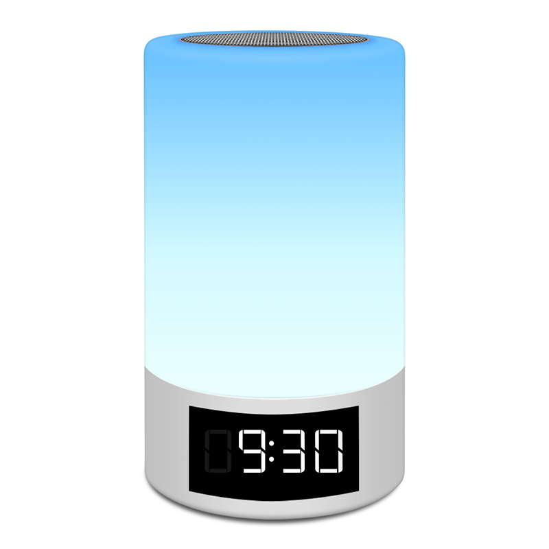 Touch Music Control 5 in 1 lampada da comodino altoparlante dente blu luci notturne con sveglia calendario digitale