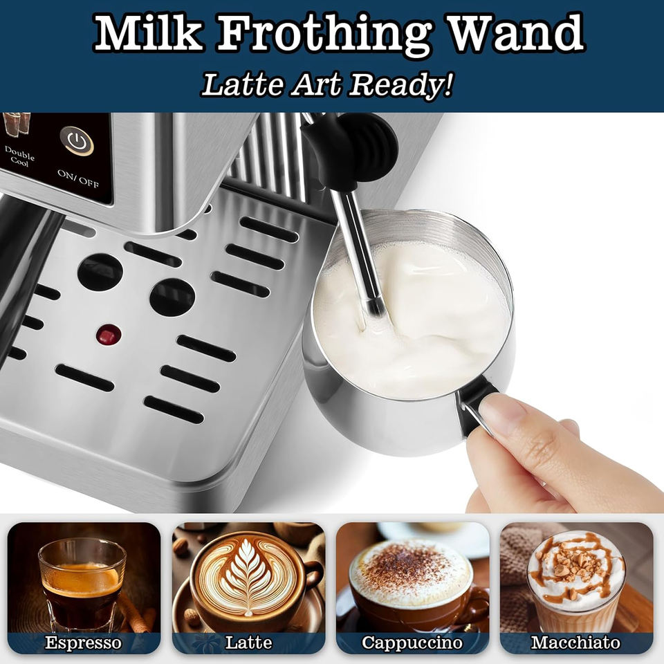 TouchScreen Espresso Machine 20Bar Compact Espresso Coffee Machine with Milk Frother Steel Espresso Maker for Latte&Cappuccino