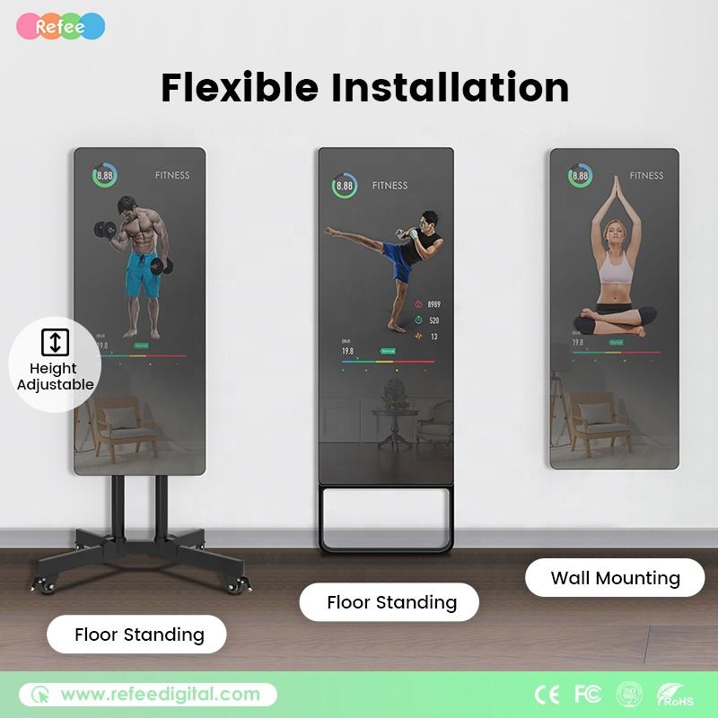 Tounchscreen Personal Trainer Mirror Floor Standing LCD Display AI Artificial Home Gym Strength Smart Exercise Fitness Mirror