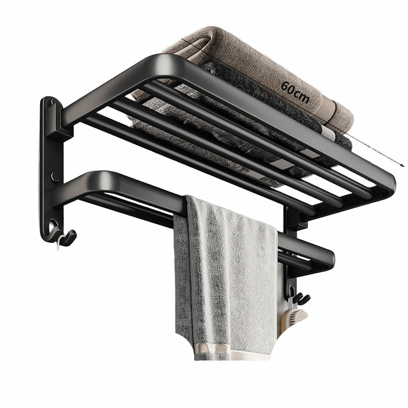 Porta Asciugamani da Parete con Ripiano Portaoggetti e Ganci, Barra in Alluminio per Bagno