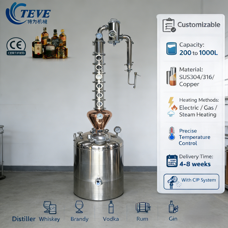 Distillatore di Alcol in Rame Towin 200L per Distillazione Domestica di Gin/Vodka/Whisky, Attrezzatura per Distilleria