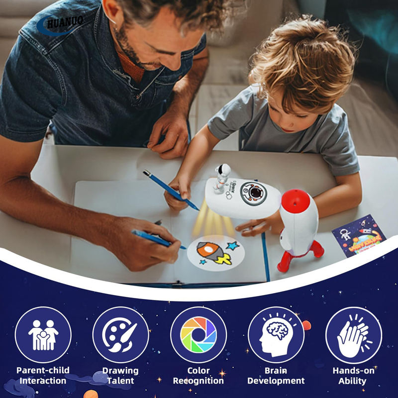 Proiettore per Disegno con 12 Penne Colorate, Disegnatore Intelligente, Giocattolo Proiettore per Bambini