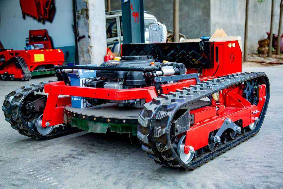 Tagliaerba telecomandato cingolato di piccole dimensioni e alta potenza per la rimozione delle erbacce in frutteti, foreste e pendenze agricole