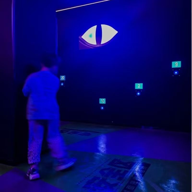 Il monitoraggio della fuga dal noleggio commerciale attiva la pelle dell'occhio del diavolo ha portato la sala giochi interattiva dell'arena a luci rosse verdi per bambini