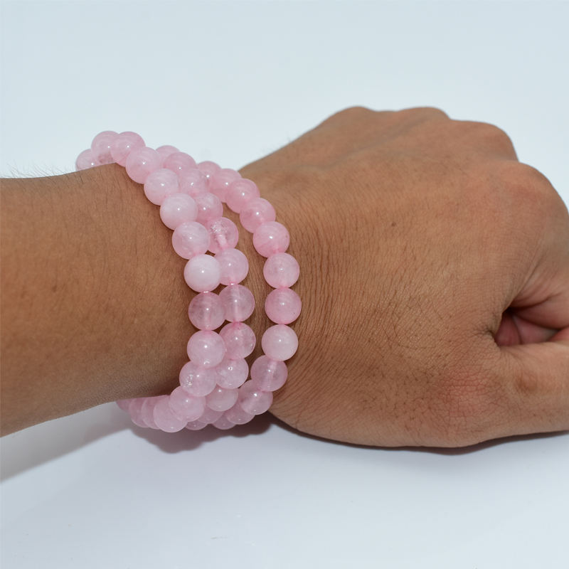 Bracciale in Quarzo Rosa con Perle di Pietra Naturale di Alta Qualità 4/6/8/10/12MM - Assicurazione Commerciale