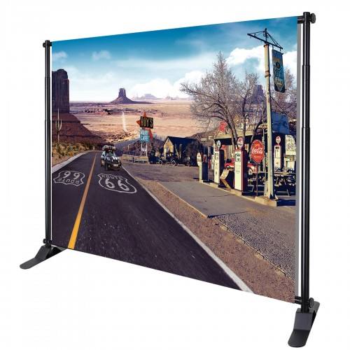 Espositore per Fiere con Banner Fotografico Step and Repeat, Supporto per Fondale Regolabile e Telescopico