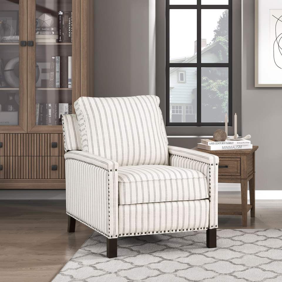 Poltrona Reclinabile Tradizionale per Soggiorno con Tessuto Testurizzato, Struttura in Legno Massello e Finitura con Borchie