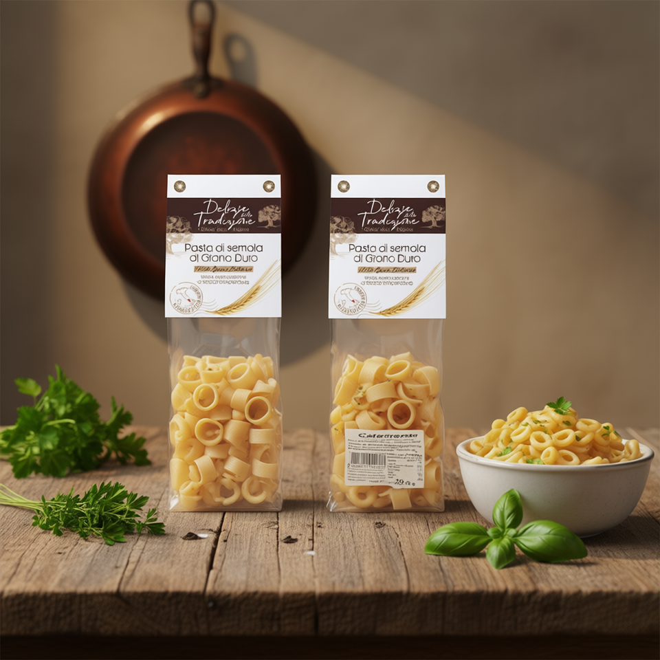 Delizie Tradizionali: Pasta Calamarata di Grano Duro Non Raffinato, 250g x 10pz, Sacchetto Premium Italiano