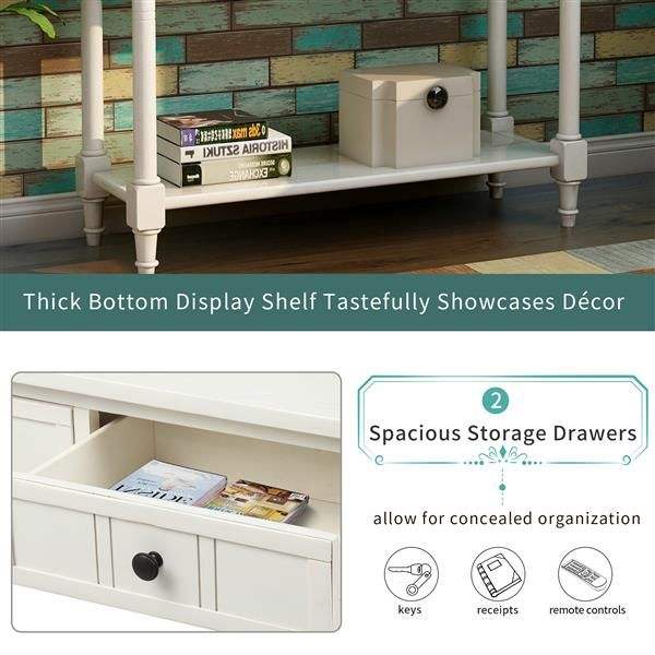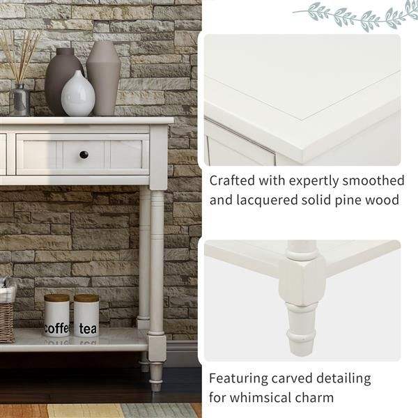 Traditional Design Console Table with Two Drawers and Bottom Shelf in Ivory White