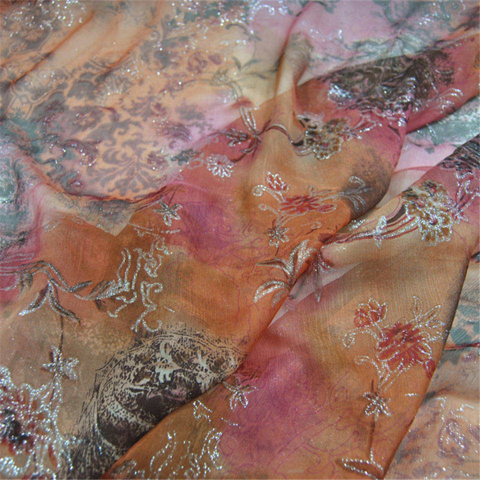 Traditional Hot Sale Graceful Silk Metallic Fabric Lurex Ready Goods Flowers Clear Grain for Shirt Chinese Clothing Dress