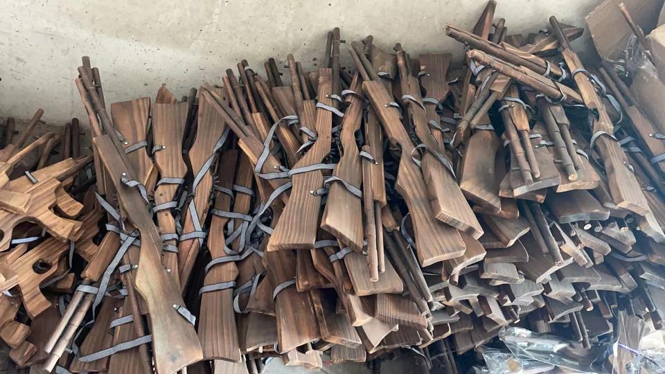 Description:rubber band shooting toys 3D shotgun model Wooden gun toys