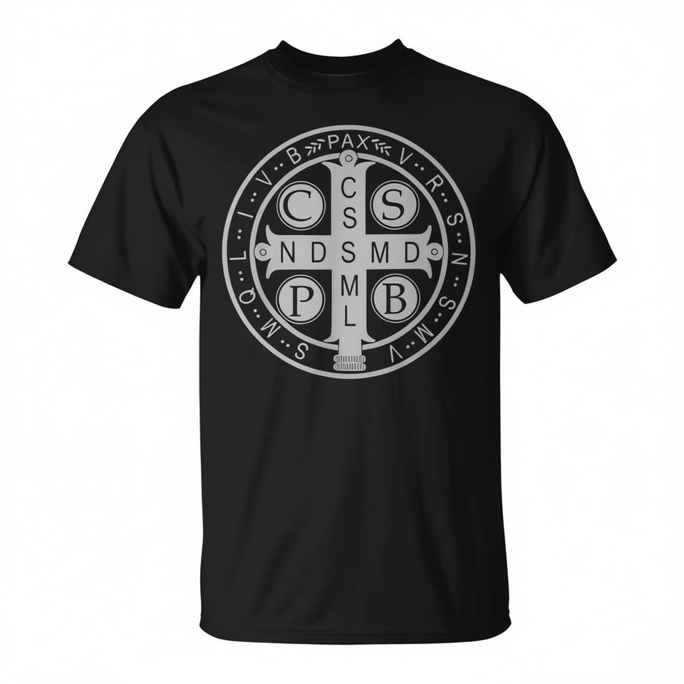 T-Shirt Promozionale con Medaglia di San Benedetto, Simbolo Tradizionale Cattolico Cristiano Latino