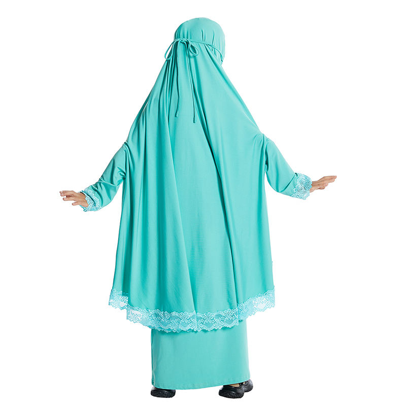 Gansu Jijian Abaya Khimar 2 pezzi per bambine in milk silk (80% poliestere+20% spandex) con pizzo, taglie 110-160cm, 1 pz/OPP