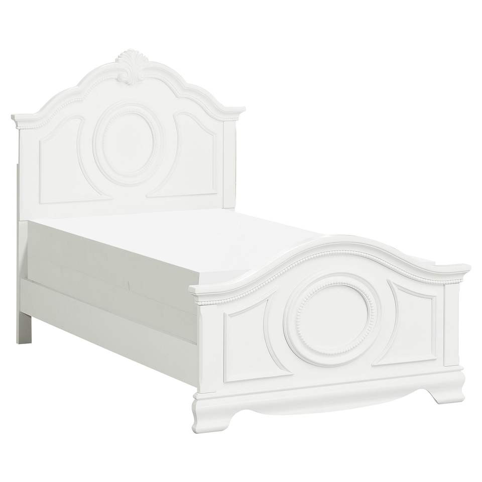 Letto a pannelli in legno stile tradizionale, finitura bianca classica, matrimoniale, per camera da letto