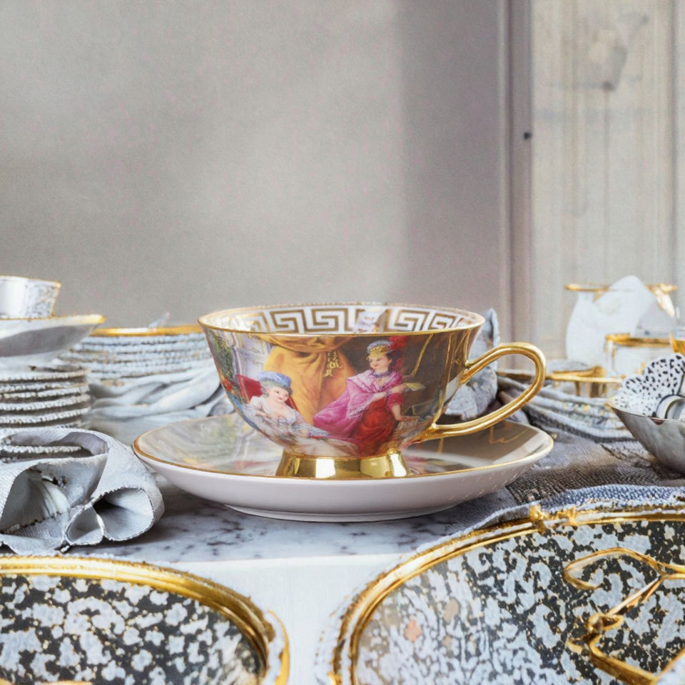 Traditional Turkish Ceramic Coffee Mug with Gold Handle Bone China Tea Cup Back to School Essential Handcrafted Tea Cups Saucers