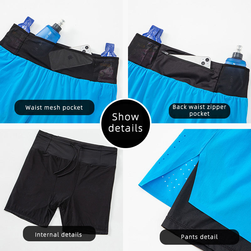 Trail running race estate da uomo ad asciugatura rapida a doppio strato foderato con pantaloncini da corsa per maratona all'aperto antiscivolo