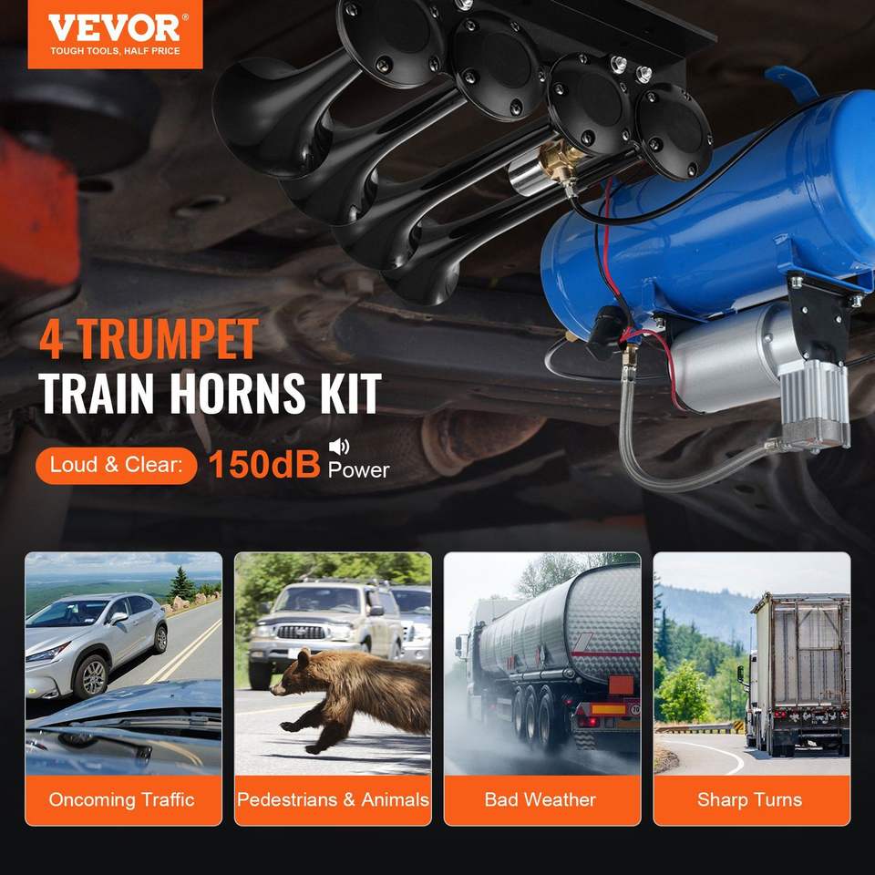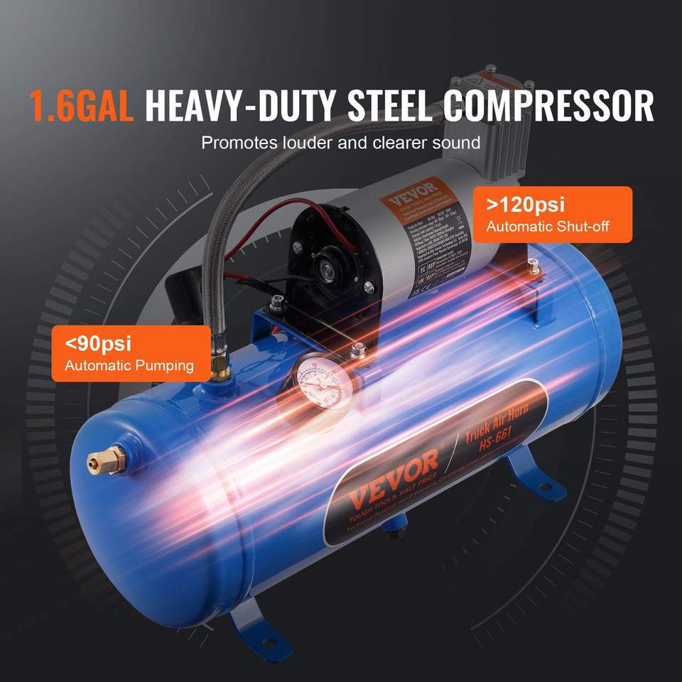 Kit Clacson per Treno con 4 Trombe, 150dB, per Pickup, Compressore d'Aria 12V 120 psi con Serbatoio da 1,6 Galloni/6 Litri