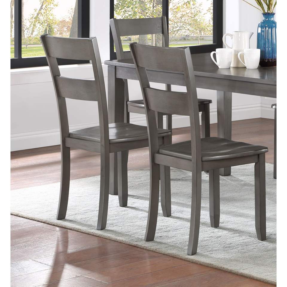 Set da Pranzo Transizionale 7 Pezzi con Tavolo Rettangolare Base in Legno e Sedie con Schienale a Scala in Finitura Grigia, Mobili per Sala da Pranzo in Legno