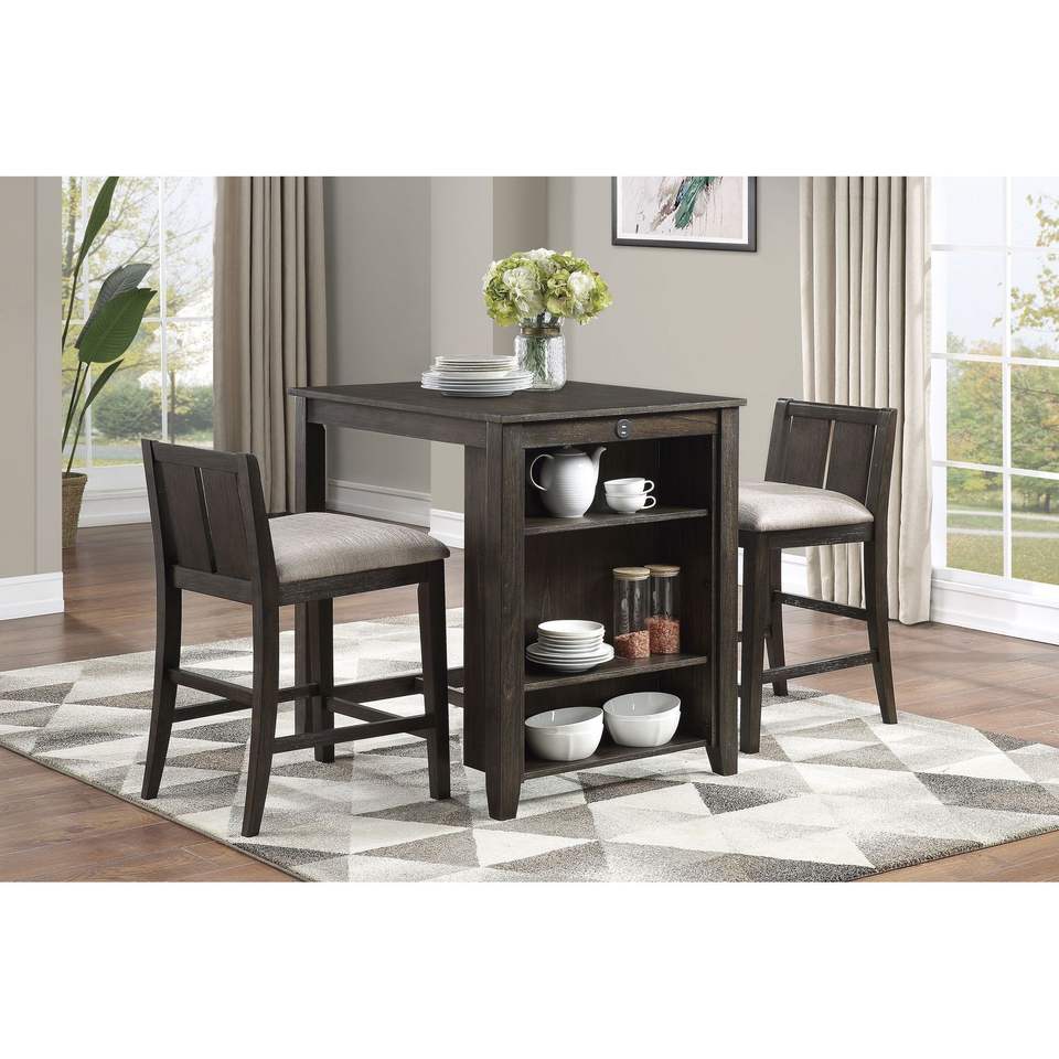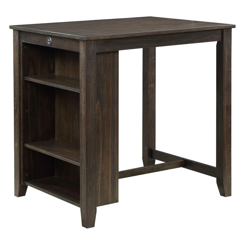 Set da Pranzo a 3 Pezzi in Stile Transizionale con Finitura Ciliegio Scuro, Tavolo Alto, Scaffale Espositivo e 2 Porte USB