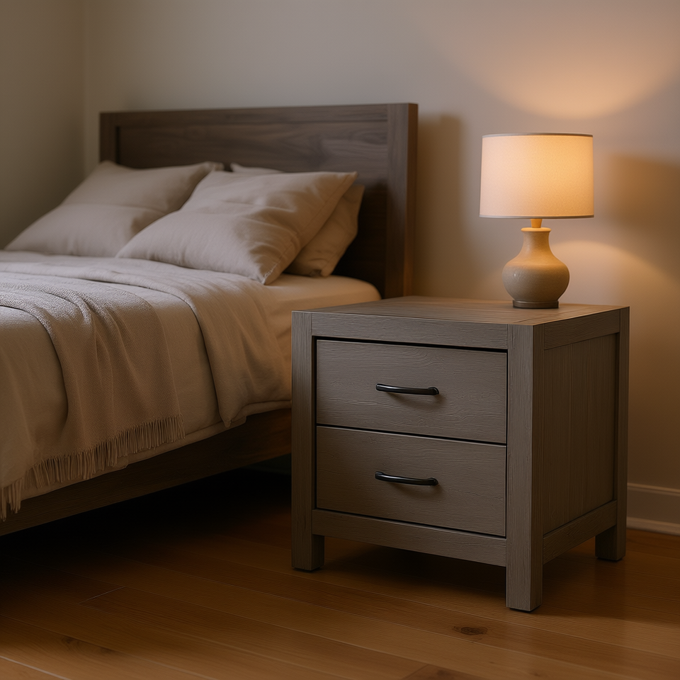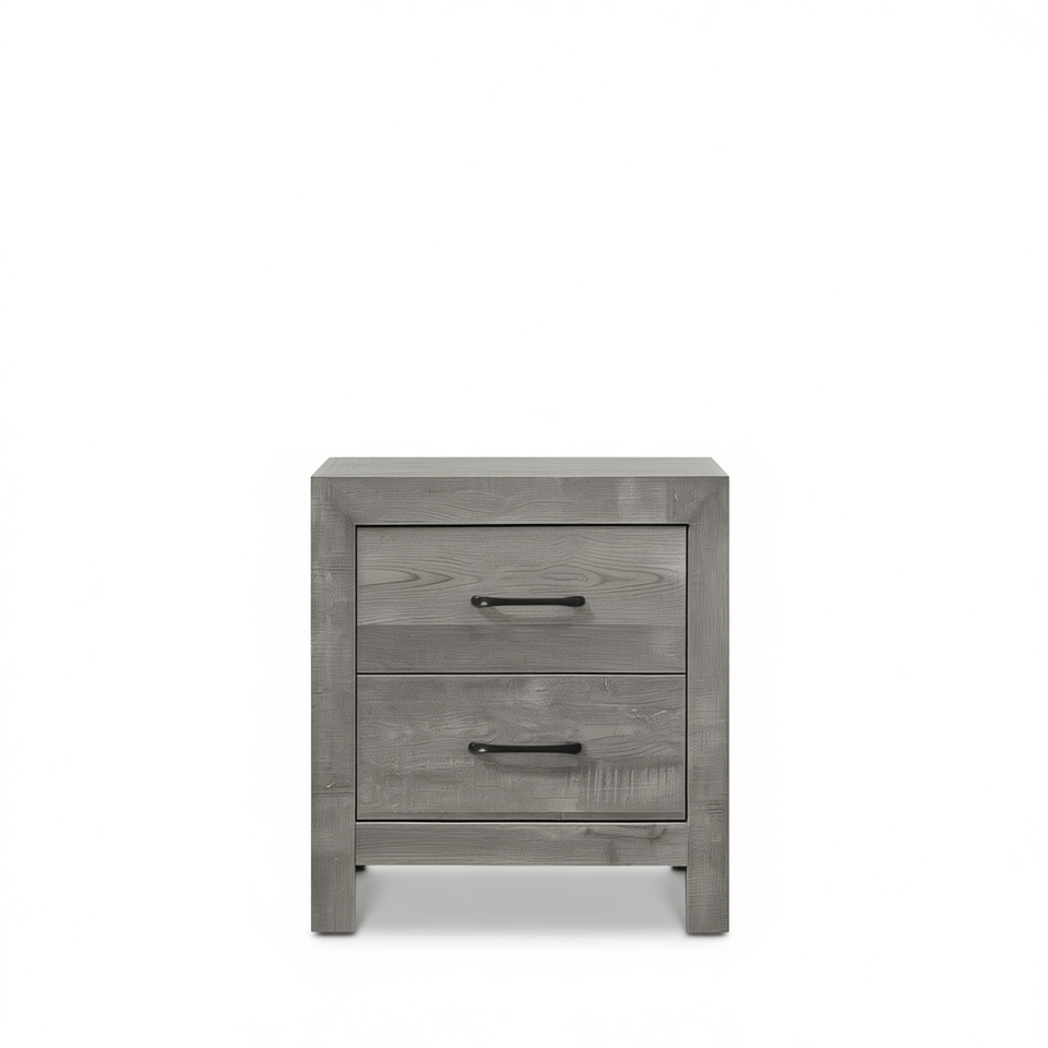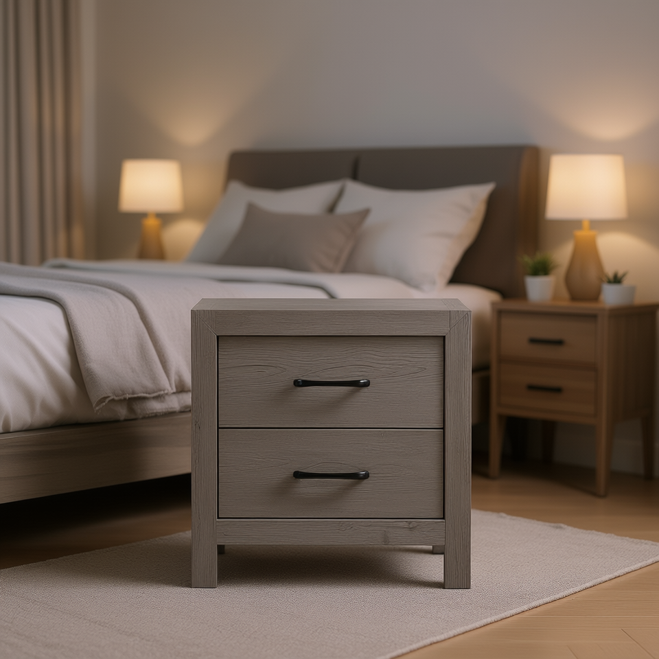 Comodino in Stile Rustico con 2 Cassetti, Finitura Grigia, Arredamento Camera da Letto in Legno, Design Moderno per Uso Domestico