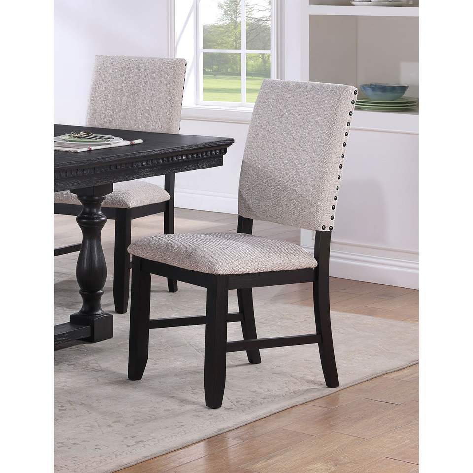 Transizionale rilassato Vintage 2pc sedie da pranzo calde finitura nero carbone con rivestimento in tessuto Nailhead altezza Standard