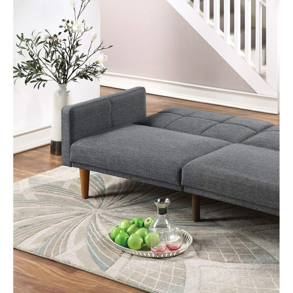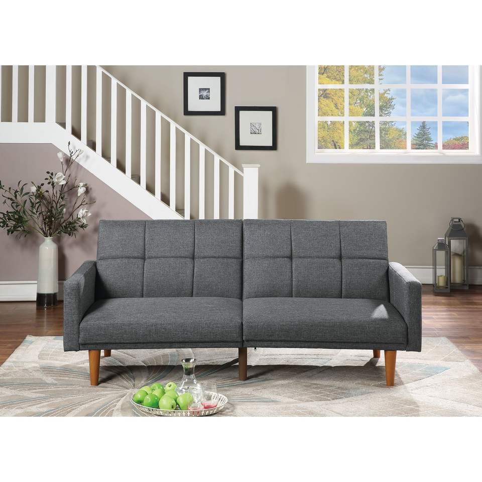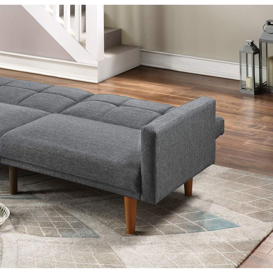 Divano Letto Trasformabile in Polifibra Blu Grigio Trapuntato Stile Transizionale con Gambe in Legno per Soggiorno